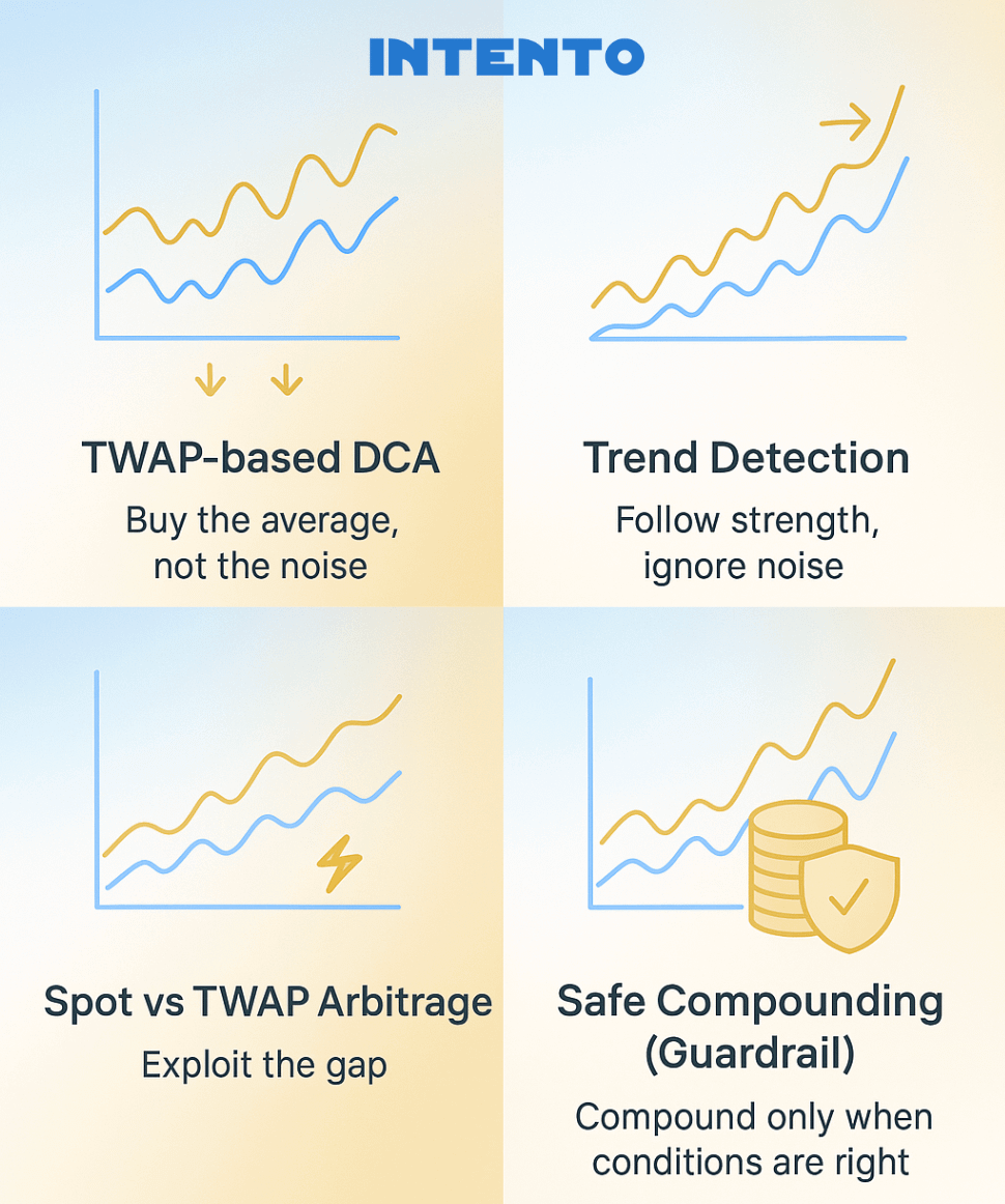 | Traders | Tools to run TWAP-based DCA, trend detection, and arbitrage logic directly on-chain — no scripts or off-chain servers. |